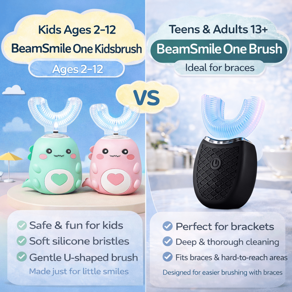 The BeamSmile One Kids Brush is made just for children ages 2 to 12. It uses a soft, U-shaped silicone brush that gently cleans every tooth at the same time. It is kind on sensitive gums and helps protect little smiles.